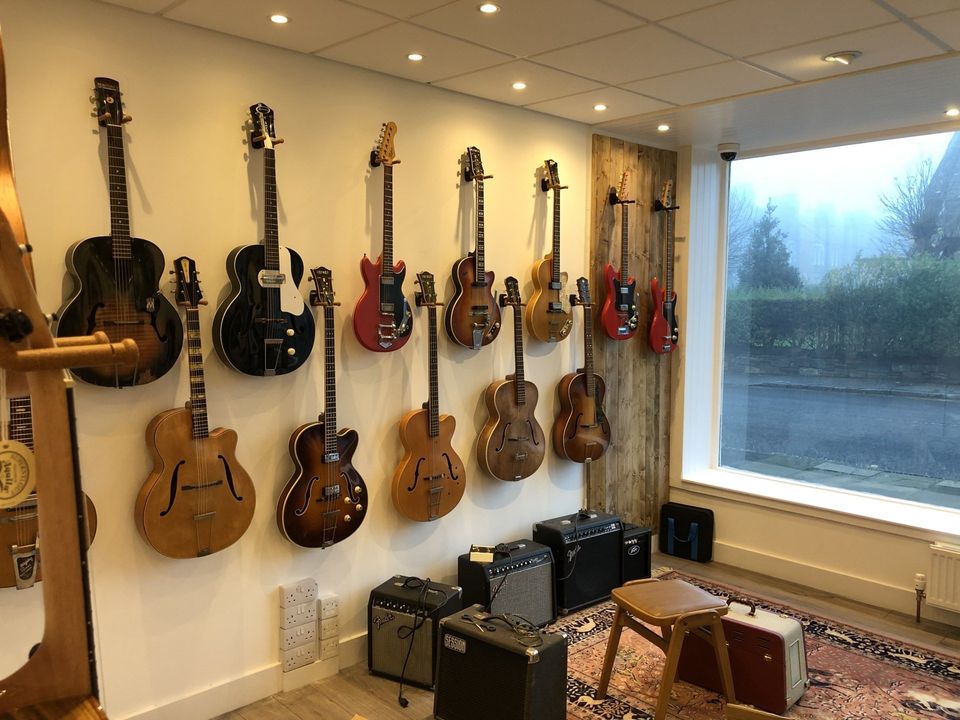 Cheio até a borda de lindas guitarras vintage, raras e retro.